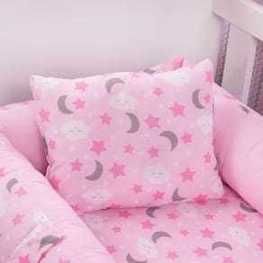 Kit Ninho Redutor + Almofada Amamentação Bebê Céu Rosa
