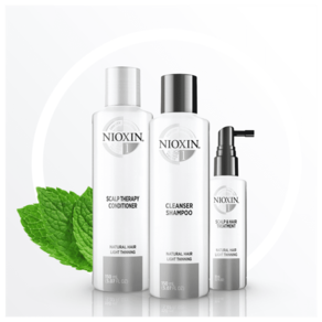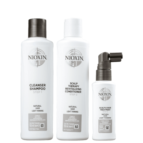 Kit de tratamento para cabelos com afinamento leve naturais. Kit Nioxin System 1 Small ajuda a evitar a quebra e devolve volume. Para quem nota seu cabelo mais fino e fragilizado.