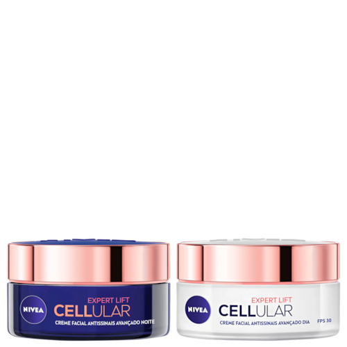 Kit com cremes faciais antissinais para dia e noite todos os tipos de pele. Kit NIVEA Expert Lift Cellular Duo promove uma hidratação intensa e suaviza sinais.