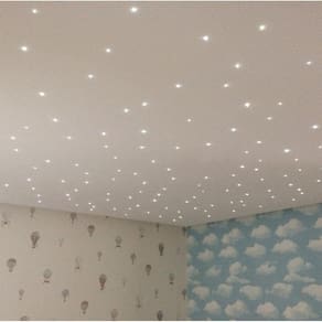 Utilizado como iluminação decorativa, deve ser aplicado em forros e painéis de gesso/madeira ou qualquer outra superfície de fácil furação. Indicado para quarto de bebê, criança ou casal, salas de banho, salas de TV, home theater, hall de entrada, cinema, brinquedoteca, berçário, spa, clínica de estética, hotel, etc.