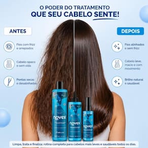 Kit Novex Oxygen Therapy Shampoo 300ml Máscara Líquida 190ml e Leave-in 100ml O Kit Novex Oxygen Therapy oferece uma rotina completa de cuidados para cabelos que precisam de limpeza suave, hidratação e restauração no dia a dia. Composto por shampoo, máscara líquida e leave-in, o kit ajuda a recuperar a aparência saudável dos fios, deixando o cabelo mais leve, macio, brilhante e com menos frizz. É ideal para quem busca praticidade aliada a um tratamento capilar eficiente, sem pesar.