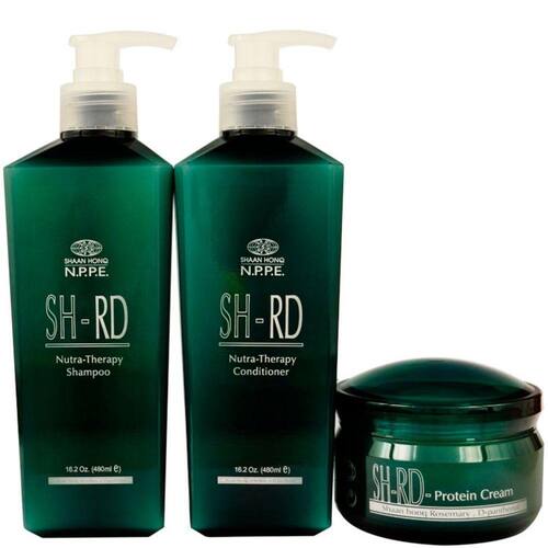 Kit de tratamento para cabelos danificados e sem vida. Kit N.P.P.E. SH-RD Nutra-Therapy estimula o couro cabeludo, restaura e hidrata o fio. Penetra na estrutura capilar e repara as fragilidades causadas pelas agressões externas.