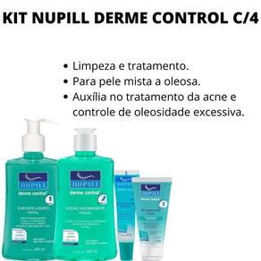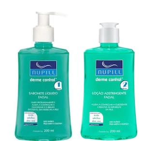 O Sabonete Líquido Facial Nupill Derme Control 200ml: Possui uma fórmula especialmente desenvolvida para a limpeza da pele mista à oleosa. Contém um bllend de ativos que ajuda a controlar a oleosidade e o brilho excessivo da pele melhorando a textura e a aparência.
