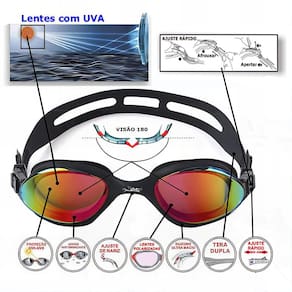 O Kit Oculos De Natação Gold Sports Wave Performance Espelhado Touca de Elastano Nose Clip e Ear Plug são projetados para atender às necessidades dos nadadores profissionais, com uma tecnologia anti-fog inovadora que garante uma visão clara, mesmo nas condições mais desafiadoras. Equipado com lentes de grande angular permitindo uma visão de 180/, anti-fog e de alta definição HD espelhadas: Mergulhe em águas cristalinas com a ajuda de nossa grande angular, anti-fog, e lentes de alta definição que proporcionam uma experiência subaquática nítida e imersiva. Ajuste confortável: O óculos de natação foi criado com um material de silicone macio e durável que se encaixa confortavelmente ao redor dos olhos sem causar irritação ou desconforto tudo pelo seu frame ser 3D, permitindo que você nade por horas. Possui armação monobloco que facilita o melhor encaixe a qualquer rosto, permitindo uma vedação adequada não irritando a pele e impedindo a entrada de água, o óculos de natação apresentam um design elegante e moderno O óculos de natação é perfeitos para uma variedade de atividades aquáticas, incluindo natação, mergulho, Triatlon e muito mais. Suas lentes são em policarbonato de ultima geração com duas camadas anti-fog e espelhadas com proteção UVA e UVB400, tiras duplas em silicone ultra soft com ajuste rápido. A touca e confeccionada em tecido 100% elastano com constura de ultima geração trançada. O clip nasal e resistente e possui silicone ultra macio não deforma é muito confortável e resistênte. O protetor de ouvido e em formado de abelha com silicone ultra maçio anti alérgico, e tem um design arrojado impedindo a entrada de água no ouvido.