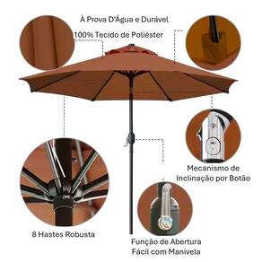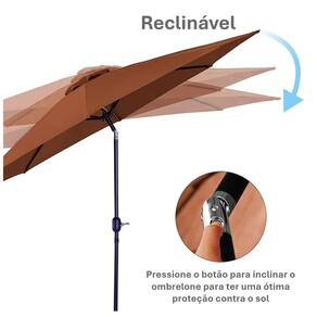 (Fácil Operação) O ombrelone facilita o uso. Basta girar a manivela para abrir o ombrelone. Caso deseja alterar a inclinação da cobertura é só pressionar o botão na articulação.