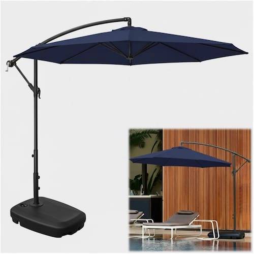 O Ombrelone vem com um pé cruzado. Deve ser fixado fixo com parafusos ao piso ou então sustentado com uma base pesada que pode ser placas de pedra, concreto ou então a solução mais prática que são as bases plásticas com preenchimento por água ou areia (disponível separadamente).