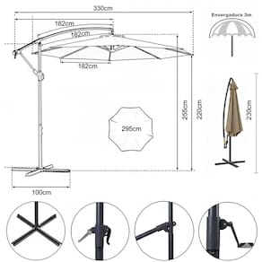 O ombrelone é feito de 100% poliéster, à prova d'água e resistente a UV, durável e fácil de limpar.
