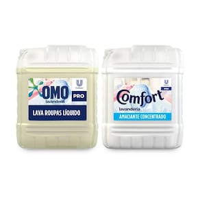Descrição do Produto O KIT OMO LAVANDERIA 7 LITROS + AMACIANTE CONFORT LAVANDERIA 7L é a solução perfeita para quem busca eficiência e qualidade na lavagem de roupas. Com a poderosa combinação do Sabão Líquido OMO e o Amaciante Confort, você terá um desempenho imbatível que transforma a rotina de lavanderia em uma experiência de cuidado e praticidade. OMO LAVANDERIA 7L Desenvolvido especialmente para o mercado profissional, o Sabão Líquido OMO é sinônimo de alta performance. Com uma fórmula concentrada, ele rende até 1.400 kg de roupas, proporcionando uma limpeza profunda e eficaz na remoção de óleos e gorduras, tanto de origem vegetal quanto animal. É ideal para estabelecimentos que exigem qualidade na lavagem, garantindo um custo por quilo de roupa lavada extremamente competitivo. Amaciante Confort Lavanderia 7L O amaciante Confort complementa a limpeza, penetra nas fibras dos tecidos, deixando suas roupas macias e perfumadas por muito mais tempo. Sua ação inovadora ajuda a manter as roupas limpas e evita manchas, proporcionando um toque suave e agradável ao usar. Com 10X mais perfume, suas roupas ficarão com uma fragrância irresistível! Modo de Uso Para obter os melhores resultados, siga as recomendações de dosagem: use a quantidade ideal de OMO para a carga de roupa e finalize com o amaciante Confort para um toque especial. Transforme a sua lavanderia com o KIT OMO LAVANDERIA 7 LITROS + AMACIANTE CONFORT LAVANDERIA 7L e descubra como é fácil manter suas roupas impecáveis! Marca: OMO E COMFORT