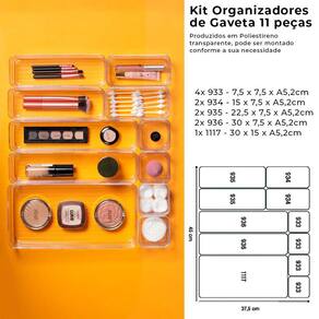 4 Organizadores Modulares 7,5 x 7,5 x 5,2 cm 2 Organizadores Modulares 15 x 7,5 x 5,2 cm 2 Organizadores Modulares 22,5 x 7,5 x 5,2 cm 2 Organizadores Modulares 30 x 7,5 x 5,2 cm 1 Organizador Modular 30 x 15 5,2 cm