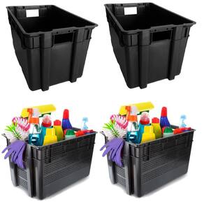 Caixa reforçada 60 litros preta, empilhavel, sem tampa, resistente.