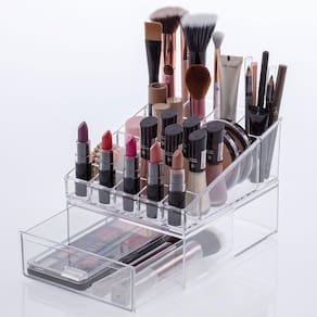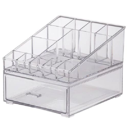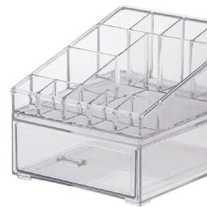 - Com o Organizador de Cosméticos sua bancada ficará organizada e seus produtos de beleza sempre a mãos. Contém 1 gaveta com tamanho ideal para paletas de sombra ou blush, 5 divisórias para batons ou esmalte e mais 7 divisórias para pincéis, demaquilantes, bases e o que mais você quiser. Confeccionado em material resistente e transparente ele é o guardião perfeito para as suas joias. Código469849221 Código de barras7898943566362 Referência1088 ModeloElegance Dimensões Produto - cm AxLxP 18,5X16,5X14,5 MarcaParamount Largura cm 18.5 cm CorCristal Peso0.667 FabricanteParamount Material da EstruturaPlástico Quantidade de Peças01 peça LinhaCAIXA ORGANIZADORA COSMÉTICOS Modelo de LumináriaElegance Composição/materialPlástico MaterialPlástico Altura cm 16.5 cm Profundidade cm 14.5 cm Descrição e Número de Peças01 peça Estampa/corCristal Recomendações de UsoNÃO USAR PRODUTO ABRASIVO Dimensões do produto - cm AxLxP 18,5X16,5X14,5 Itens inclusos na embalagem-01 Kit Organizador Ean: 7898943566362