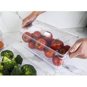 Com os organizadores de geladeira da linha Clear Fresh, você terá organização e irá conservar e manter o frescor de seus alimentos por mais tempo, a tampa com ventilação ajustável mantém o nível de umidade ideal para cada tipo de alimento, mantendo-os frescos por mais tempo. Possui bandeja de drenagem que impede que a umidade acumulada se mantenha no alimento, evitando o murchamento e deterioração precoce. São empilháveis para otimizar ainda mais seu espaço de armazenamento.
