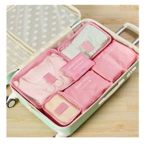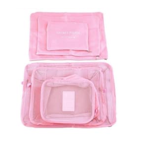 Kit Organizador De Malas 6 Em 1 Rosa Viagem Necessaire Bolsa Porta Roupas Sapato Calcinha Biquini Ziper Completo