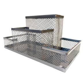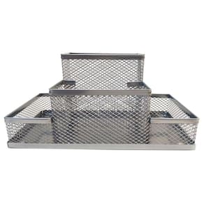 Kit Organizador de Mesa para Escritório de 4 Partições Prata Para quem gosta de ter tudo sempre à mão, com agilidade e praticidade. O organizador de escritório com 4 partições é ideal para você.Com ele, você vai evitar a perda de tempo procurando os itens de que precisa e que usa com frequência. Tudo estará a sua mão.O organizador de mesa de escritório tem 4 partições com tamanhos variados. Permitindo organiza canetas, lápis, clips, bloco de notas e pequenos objetos. Cor: PrataMaterial: Metal Tamanho:20cm Largura10cm Altura10cm Comprimento Modelo: Kit organizador de mesa escritório com 4 partições Marca: Markys Store