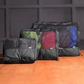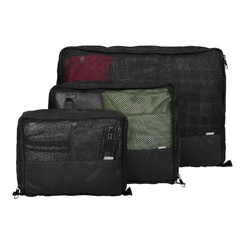 BAZARZOTE APRESENTA:Kit Organizador De Roupas Mesh Trio CurtloOrganizadores para melhor acomodar e transportar as roupas dentro da mochila ou mala. São três tamanhos: P - ideal para roupas íntimas, meias ou pequenas peças de vestuário; M - recomendado para camisetas ou calções; G - para camisas, blusas ou calças. São ultraleves e resistentes com abertura em zíper e tampa em tecido telado que facilita a ventilação e visualização.Dados TécnicosTampa em tecido telado que deixa as roupas arejadas e de fácil visualização;Extremamente leve e compacto quando não estiver em uso;Abertura por zíper.Capacidade: P - 1,8L / M - 3,3L / G -7,3LDimensão: P - 15x20x8 cm / M - 20x25x10 cm / G - 26x36x11 cmPeso: P - 46g / M - 62g / G - 82g = 190gTecido: Nylon Rip Stop 95
