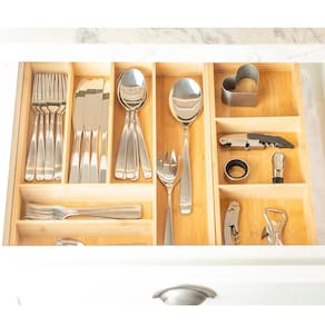 Kit Organizador De Talher Gaveta Armário Bambu 2 Peças