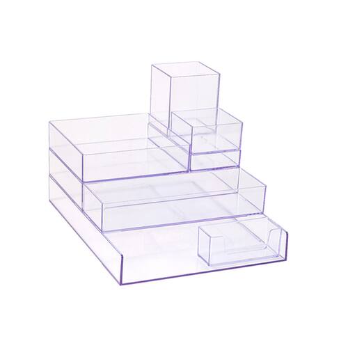 Kit Organizador Escritório Gaveta Prateleira Mesa Porta Objetos 8 Módulos Prime Cristal - com design moderno, linhas clean, acabamento liso com bordas arredondadas e visual sofisticado para atender público mais exigente A linha prime modular que tem como diferencial a possibilidade de modular, criar conjuntos distintos para uso junto ou separado. características: possibilita colocar todos os objetos, acessórios num só lugar, otimização de espaço. possibilidades variadas de usos como escritório, closet, cozinha, banheiro.
