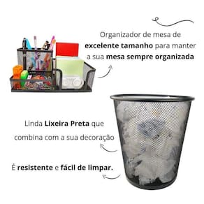 Kit Organizador Mesa Escritório E Lixeira Aramada Home