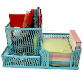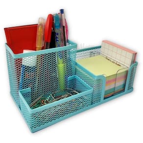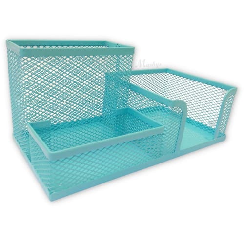 Com design moderno e na cor Azul, este kit organizador de mesa, vai valoriza a decoração e melhorar a organizado do seu escritório, deixando seu ambiente mais sofisticado. Benefícios do Produto - Acabamento lindo que ganha destaque sobre a mesa. - Produto super leve e compacto. - Comportam todas as suas canetas, lápis, clips e bloco de notas organizadamente. - Material de alta durabilidade e resistência. - Modelo aramado fácil de limpar. - Grande resistência à ferrugem e corrosão. - Não ocupa muito espaço na mesa. - Canetas, Lápis, Borracha, Clips e Bloco de Notas sempre ao seu alcance. Características: - Modelo: Kit organizador de mesa escritório - Cor: Azul - Material: Metal - Tipo: Porta Caneta, Porta Clips e Porta Bloco de Notas - Tamanho:20x10x10cm (LxAxC) - Peso: 250gr