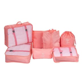 Kit organizador para mala de viagem 7 peças - rosa Viajar é incrível, mas manter as coisas organizadas pode ser um desafio. Com o nosso conjunto de organizadores de mala de viagem de 7 peças, você pode desfrutar de sua viagem sem se preocupar com bagunça. Cada organizador tem uma função específica, como guardar sapatos, roupas íntimas, meias, eletrônicos e muito mais. Com tamanhos diferentes, eles se encaixam perfeitamente em qualquer mala e ajudam a maximizar o espaço. Além disso, eles são feitos de material resistente e fácil de limpar, então você pode usá-los em várias viagens. Não importa se você é um viajante frequente ou apenas faz uma viagem de fim de semana, esse conjunto de organizadores é essencial para manter suas coisas arrumadas e fáceis de encontrar. O kit contém 7 peças nos seguintes tamanhos: Cubos: G: 39x29x10 cm M: 31x25x10 cm P: 30x21x10 cm Necessaires: 1: 35x28 cm 2: 36x26 cm 3: 27x16 cm 4: 34x24cm Material: poliéster Marca: Mimos E Viagens