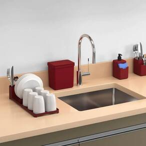 Otimização do Espaço: Ao utilizar esse kit, é possível maximizar o uso do espaço disponível na pia, evitando bagunça e facilitando o acesso aos utensílios e produtos que são frequentemente utilizados na área da pia.