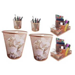 Kit organizador, porta caneta e lixeira rose gold escritório Kit escritório rose gold com 6 unidades