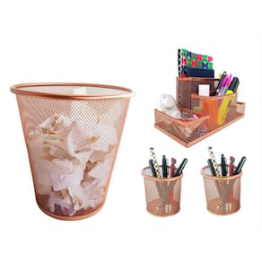 Kit organizador, porta caneta e lixeira rose gold escritório Kit escritório rose gold com 4 peças