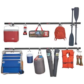 O kit inclui três trilhos de 48 polegadas 121,92 centímetros, quatro ganchos multifuncionais, dois ganchos para refrigeradores, três ganchos utilitários e três pacotes de hardware. Com esse conjunto, você poderá organizar facilmente suas ferramentas, equipamentos de jardinagem, materiais de limpeza e muito mais. As garras de travamento nos ganchos de acessórios garantem uma fixação segura ao prender os ganchos no trilho. O design durável e compacto cria zenamento adicional ao utilizar o espaço entre os pinos da parede. É fácil anexar, remover e reposicionar os itens conforme necessário. Com esse kit, você terá uma solução eficiente para organizar sua garagem de forma prática e conveniente.