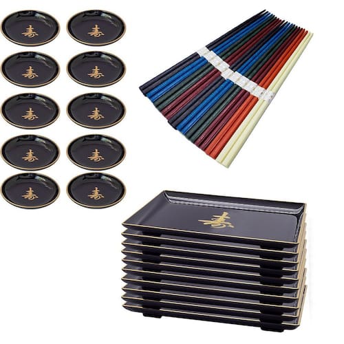 Kit Oriental 10 Pessoas - Molheira, Prato e Hashi