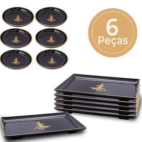 Kit Oriental Japonês para 6 Pessoas Molheira Prato Retangular