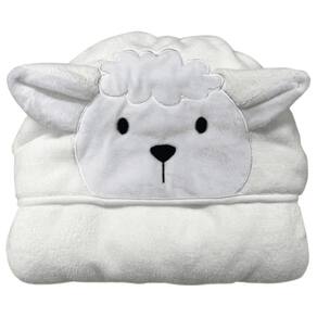 Contém 1 Toalha de Banho com Capuz (70 cm x 100 cm + capuz) 1 Bicho de Pelúcia Ovelha (25 cm x 9 cm)