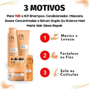 Kit Ox Science Mari Maria Hair Gloss Repair: Shampoo 250ml, Condicionador 200ml, Máscara 180g, 3 Doses Concentradas e Sérum 30ml