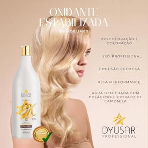 As Oxidantes Estabilizadas ou água oxigenada da DYUSAR Professional possuem fórmula estabilizada, cremosa e perfumada, além de proporcionar uniformidade e brilho. Modo de uso: Misturar a emulsão oxidante com a tintura ou descolorante, conforme as proporções de diluição aconselhadas para cada tipo de produto. Cuidados: contém substâncias passíveis de causar alergia na pele. Antes de usar, faça a prova de toque. Não usar nos cílios e sobrancelhas pois pode causar irritação nos olhos ou cegueira. Não aplicar se o couro cabeludo estiver irritado ou lesionado. Em caso de contato, enxaguar com água abundantemente. Manter fora do alcance das crianças. Evitar exposição ao sol. Contém peróxido de hidrogênio. Usar luvas adequadas. Usar luvas apropriadas. Respeitar o tempo de pausa. Não utilizar ferramentas metálicas. Tempo de uso: Até 50 minutos. Este produto deve ser utilizado apenas por um profissional cabeleireiro. prova de toque: aplicar pequena quantidade no antebraço ou atrás da orelha. Deixar sobre a pele uma hora. Em seguida enxaguar o local. Aguardar 24 horas. Caso surja sinais de irritabilidade, não utilizar o produto. Marca: Dyusar Cosmeticos
