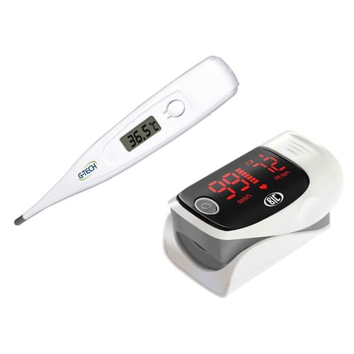 Oxímetro de pulso portátil adulto, não invasivo inovador com detecção da saturação de oxigênio (SpO2%) e frequência cardíaca (BPM), leve, compacto e de fácil operação, contém visor de LED na cor vermelha, alta precisão e durabilidade com indicador de carga da pilha, função de desligamento automático (após 8 segundos sem uso) para economia de energia. ESPECIFICAÇÕES TÉCNICASModelo: YK-80ACor: CinzaTipo: DedoUso: AdultoDisplay: LEDSaturação Arterial De Oxigênio SPO2% Faixa de Medição: 70% - 99% / Resolução: ± 1% / Precisão: ± 2% (80% ~ 99%)Frequência Cardíaca BPM Faixa de Medição: 30 - 240 bpm / Resolução: ± 1% / Precisão: ± 1 bpm ou ± 1%Alimentação: 2 Pilhas Alcalinas Pequenas AAA - 1.5VConsumo de energia: 30mAhDimensão: 58mm x 36mm x 33mmMarca: BIC - (Linha Bem Estar)Garantia: 1 ano contra defeito de fabricaçãoAprovação: Portaria INMETRO: No 350 de 06/09/10.Registro Ministério da Saúde / ANVISA: 80540440004 Contém na Embalagem:1 Oxímetro Portátil Mod. YK-80A 1 Cordão1 Manual Instrução em Português2 Pilhas AAA - 1.5V O Termômetro Clínico Digital G Tech é prático e preciso, possui uma memória interna para guardar a última temperatura medida. Mede a temperatura em até 120 segundos, indicado para medição apenas de temperatura corpórea. Características- Faixa de medição: 32,0°C – 43,9°C - - Fonte de alimentação: bateria de lítio de 1.5/1.55 V (não recarregável).- Retenção da temperatura máxima: em cada medição, a temperatura máxima aparece no mostrador, até o aparelho se desligar.- Sinal sonoro: indica que o aparelho está pronto a ser utilizado ou que a medição terminou.- Auto-verificação automática- Resultados das medições: expressos em grau Celsius (°C).- Tempo total da medição da temperatura de 50 a 120 segundos.- Visor grande de fácil leitura- Memória: guarda automaticamente a última temperatura medida.- Desligamento automático.