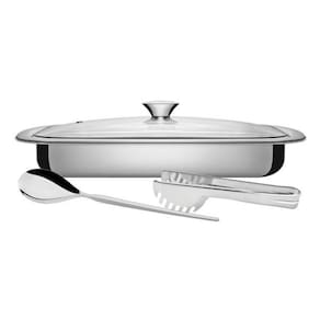 Kit Para Assar E Servir Tramontina Cosmos Em Aço Inox Com Tampa De Vidro 3 Peças Beleza e praticidade na mesa. O Kit para Assar e Servir Tramontina Cosmos em Aço Inox com Tampa de Vidro 3 Peças é ideal para assar e servir com elegância. Com peças feitas em aço inox, mantêm suas características , preservando a beleza, a higiene e a durabilidade do material. Com design moderno proporciona requinte ao compor a mesa e a tampa de vidro transparente que permite a visualização dos alimentos. A Linha Cosmos é feita para cozinhar com amor e beleza. Peso Produto Com Embalagem (Kg): 1.45 | Nome do Simples no Fornecedor: Kit para Assar e Servir Tramontina Cosmos em Aço Inox com Tampa de Vidro 3 Peças | Largura Produto Com Embalagem (cm): 39 | Produto precisa de Montagem?: Não | Comprimento do Produto (cm): 25 | Descrição do Tamanho: LxAxP | Estado de Origem: GO | Garantia em Meses: 1 | Comprimento Produto Com Embalagem (cm): 25 | Altura do Produto com Embalagem (cm): 6 | Material para Filtro: N/I | Instruções/Cuidados: Limpar com pano seco. | Conteúdo da Embalagem: 1 Prdouto - 1 Volume | Largura do Produto (cm): 39 | Peso do Produto (Kg): 1.45 | Altura do Produto (cm): 6 | CORES: N/I