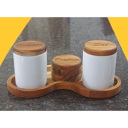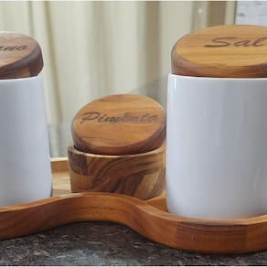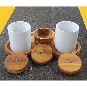 Pote Madeira Teca: 3,6cm x 8,2cm Capacidade 200ml