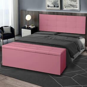 Confeccionados com material de alta qualidade, ambos os itens do kit apresentam acabamento em suede, proporcionando um toque suave e agradável ao toque, além de serem resistentes e duráveis. A cabeceira painel serve como um elemento decorativo central, enquanto a calçadeira baú oferece uma solução prática para organizar roupas de cama, travesseiros e outros itens.