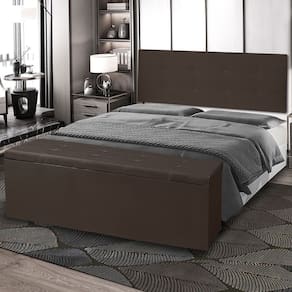 Confeccionados com material de alta qualidade, ambos os itens do kit apresentam acabamento em Corano, proporcionando um toque suave e agradável ao toque, além de serem resistentes e duráveis. A cabeceira painel serve como um elemento decorativo central, enquanto a calçadeira baú oferece uma solução prática para organizar roupas de cama, travesseiros e outros itens.