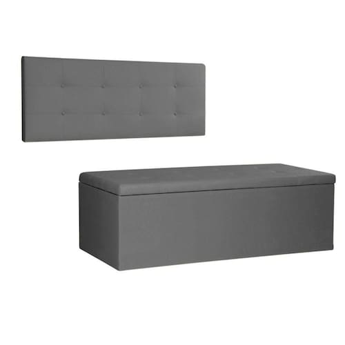 Kit Painel E Calçadeira Baú King 1,95m Berlim Suede Cinza - Pallazio