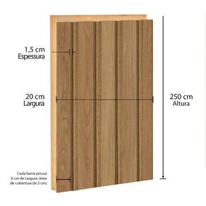 O painel ripado CASABLANCA é composto por barras de 250cm de comprimento, 1,5cm de espessura e 6cm de largura, área de cobertura de 5cm, pois uma barra sobrepõe a outra. Comercializado em pacotes com 4 unidades, o pacote (ou seja, as 4 placas juntas) correspondem a 0,5m², para ser montado como e onde quiser. 1 Pacote - 0,5m² 2 Pacotes - 1m² 3 Pacotes - 1,5 m²... Exercite sua criatividade, inovando no visual de casa! O produto não é indicado para exposição direta ao sol e à chuva. Indicado para ambientes internos. Limpeza fácil. Não necessita de mão de obra especializada para instalação. Importante: NÃO ACOMPANHA BARRAS DE ACABAMENTO Acompanha Ficha Técnica: Não Acompanha Manual de Instalação: Não Ambiente Principal: Sala de Estar Ambientes Recomendados: Área Comercial/Área Residencial Certificado: FSC Comprimento: 250 cm Cor: Roble Marroml Cor do Produto: Roble Marroml Corte: Máquina de Serra Escala de Brilho: Fosco Formato: Retangular Garantia do Fornecedor: 03 meses Imune a cupim: Não Informações Complementares: Ideal para ambientes internos. Largura: 20 cm Manual de Montagem e Instalação: https://cdn2.madeiramadeira.com.br/atributo/moldurama/1003075-manual-de-instalacao-painel-ripado-casablanca.pdf Material Principal: MDF Origem do Produto: Nacional Peso por Caixa: 4 kgKg Peso Por Unidade: 4 kg Pode ser Pintado: Não Recomendações de Uso, Manutenção e Limpeza: O produto não é indicado para exposição direta ao sol. Sua limpeza deverá ser feita com pano úmido e detergente neutro.