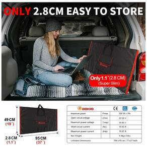 DOBRÁVEL E LEVE E FÁCIL DE CARREGAR Este painel solar fotovoltaico embala 300W de potência, mas tem apenas de espessura, Dimensão dobrável de 104 x e pesa 7 kg, facilitando a montagem, transporte, suspensão e remoção. EFICIÊNCIA DE ALTA CONVERSÃO PODEROSA com célula solar monocristalina de alta eficiência, você obterá maior eficiência de energia, embora o painel seja menor do que um modelo tradicional. Maximiza a saída do sistema reduzindo a perda de incompatibilidade SEGUE LISO E FÁCIL DE ZENAR O painel fica bem protegido em um bolso de tecido grosso costurado. Uma alça de transporte prática está disponível, fácil de transportar e usar e com Ideal para usar para carros, telhados, motocicletas, barcos, veículos para neve, tratorcamping, camping, escalada, caminhada, piquenique, recarregando a bateria do seu carro ou em emergências, acender uma luz no seu galpão CONTROLADOR SOLAR para você Carregador solar para todas as baterias de 12V, com sua tensão ideal de 18V. Proteção contra sobrecarga, sobrecarga, curto circuito Marca: Não Informado