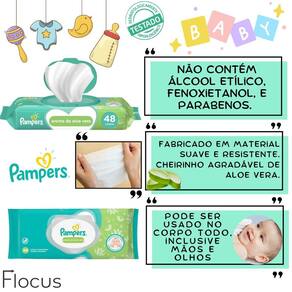 Kit Pampers Glicerina Bepantol Baby Pomada Assaduras Lenços Bem vindo a a loja Flocus. É um prazer tê-lo a como nosso a cliente CONTEÚDO DO KIT: 1 Shampoo Pampers Glicerina - 200ml 1 Condicionador Pampers Glicerina - 200ml 1 Sabonete Líquido para o Corpo Pampers Glicerina - 200ml 1 Lenço Umedecido Pampers Aroma de Aloe Vera 96 unidades 1 Creme Preventivo de Assaduras Bepantol Baby - 120g Pampers Glicerina proporciona limpeza suave e segura do cabelo delicado de bebês e crianças. Ideal para todos os tipos de cabelo do bebê. O kit de Glicerina Pampers traz uma fórmula hipoalergênica pensada para o cuidado especial do cabelo delicado dos bebês e segura até para couro cabeludo sensível, trazendo maior suavidade e mantendo os fios macios. Além disso, proporciona uma lavagem suave e sem irritações nos olhos, evitando o desconforto das lágrimas durante o banho. Conta com pH ideal para o couro cabeludo do bebê e perfumação suave e segura para recém-nascidos. O Sabonete Líquido Pampers Glicerina foi criado pensando em um banho suave e seguro. Sua fórmula com Glicerina e Óleo de Girassol confere maior suavidade e mantém a pele do bebê macia. Com fórmula hipoalergênica, o sabonete da Pampers é seguro até para pele sensível e pode ser desde os primeiros dias. Conta com pH ideal para a pele do bebê e perfumação suave, segura para recém-nascidos. Os Lenços Umedecidos Pampers com Cheirinho De Aloe Vera que foram criados para aquela limpeza prática do dia a dia, porque além de serem suaves e resistentes, hidratam e refrescam a pele do seu bebê sem causar irritações, e podem ser em bumbuns, mão e rosto. Seu bebê limpinho e sem pele irritada com Pampers Incluímos nesse kit baby o Creme Antiassaduras Bepantol Baby que vai além dos antiassaduras comuns. Com sua fórmula exclusiva, livre de conservantes, forma uma barreira transparente que deixa a pele delicada do seu bebê respirar, mantendo-a sempre saudável. Possui Lanolina, que forma uma barreira protetora transparente no bumbum, e Pró-Vitamina B5, que penetra na pele do bebê deixando-a mais resistente contra assaduras. Além disso, Bepantol Baby é livre de perfumes, corantes e parabenos que podem sensibilizar a pele delicada do bebê. BENEFÍCIOS: Limpeza completa da cabeça aos pés; Sem álcool, fenoxietanol, parabenos e corantes; Testado e aprovado por pediatras e dermatologistas; Seguro até para couro cabeludo sensível; Hipoalergênico e seguro desde os primeiros dias; 98% de ingredientes naturais; Fórmula vegana e livre de crueldade animal; Mais suavidade e mantém a pele do neném macia; Hipoalergênico; Sem lágrimas. Bepantol Baby: protege a pele das assaduras, além de mantê-la resistente, macia e hidratada. MODO DE USAR: Shampoo: Coloque um pouco do shampoo em uma das mãos e espalhe pelo cabelinho molhado do bebê durante o banho. Massageie suavemente e enxágue em seguida com água. Condicionador: Coloque um pouco do condicionador ao longo dos fios e espalhe pelo cabelinho molhado do seu bebê durante o banho. Desembarace com facilidade deixando agir por alguns minutos. Enxágue bem em seguida com água. Sabonete líquido: Coloque um pouco do sabonete líquido em uma das mãos. Espalhe por todo o corpinho e cabelinhos molhados do seu bebê durante o banho. Massageie suavemente. Enxágue em seguida com água. Lenço umedecido: Para abrir a embalagem, levantar a etiqueta no local indicado. Retire uma toalhinha umedecida e use nas áreas que deseja limpar. OBS: Não jogue no vaso. Jogue a toalhinha umedecida Utilizado no lixo. OBS 2:Manter a embalagem bem fechada para conservar a qualidade do produto. Bepantol Baby: Aplique uma camada de Bepantol Baby em toda a troca de fralda. Agradecemos por escolher a Loja Flocus e por confiar em nós para cuidar da beleza dos seus cabelos. Em caso de dúvidas, favor enviar sua pergunta Flocus