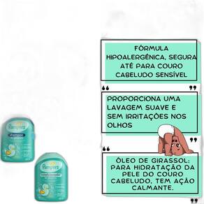 Kit Pampers Shampoo Condicionador Glicerina Lenço Umedecidos Bem vindo a a loja Flocus. É um prazer tê-lo a como nosso a cliente CONTEÚDO DO KIT: 1 Shampoo Pampers Glicerina - 200ml 1 Condicionador Pampers Glicerina - 200ml 1 Sabonete Líquido para o Corpo Pampers Glicerina - 200ml 2 pac. Lenços Umedecidos Pampers Aroma de Aloe Vera 48 unidades cada Pampers Glicerina proporciona limpeza suave e segura do cabelo delicado de bebês e crianças. Ideal para todos os tipos de cabelo do bebê. O kit de Glicerina Pampers traz uma fórmula hipoalergênica pensada para o cuidado especial do cabelo delicado dos bebês e segura até para couro cabeludo sensível, trazendo maior suavidade e mantendo os fios macios. Além disso, proporciona uma lavagem suave e sem irritações nos olhos, evitando o desconforto das lágrimas durante o banho. Conta com pH ideal para o couro cabeludo do bebê e perfumação suave e segura para recém-nascidos. Não contém nenhum álcool etílico, fenoxietanol, parabenos e corantes. Fórmula biodegradável, vegana e livre de crueldade animal, com 97% de ingredientes naturais. Testado, aprovado e recomendado por pediatras e dermatologistas. Sabonete líquido infantil. Pampers Glicerina oferece limpeza suave da cabeça aos pés, para cuidar da pele delicada dos bebês. O Sabonete Líquido Pampers Glicerina foi criado pensando em um banho suave e seguro. Sua fórmula com Glicerina e Óleo de Girassol confere maior suavidade e mantém a pele do bebê macia. Com fórmula hipoalergênica, o sabonete da Pampers é seguro até para pele sensível e pode ser desde os primeiros dias. Conta com pH ideal para a pele do bebê e perfumação suave, segura para recém-nascidos. Os Lenços Umedecidos Pampers com Cheirinho De Aloe Vera que foram criados para aquela limpeza prática do dia a dia, porque além de serem suaves e resistentes, hidratam e refrescam a pele do seu bebê sem causar irritações, e podem ser em bumbuns, mão e rosto. Seu bebê limpinho e sem pele irritada com Pampers BENEFÍCIOS: Limpeza completa da cabeça aos pés; Sem álcool, fenoxietanol, parabenos e corantes; Testado e aprovado por pediatras e dermatologistas; Seguro até para couro cabeludo sensível; Hipoalergênico e seguro desde os primeiros dias; 98% de ingredientes naturais; Fórmula vegana e livre de crueldade animal; Mais suavidade e mantém a pele do neném macia; Hipoalergênico; Sem lágrimas. MODO DE USAR: Shampoo: Coloque um pouco do shampoo em uma das mãos e espalhe pelo cabelinho molhado do bebê durante o banho. Massageie suavemente e enxágue em seguida com água. Condicionador: Coloque um pouco do condicionador ao longo dos fios e espalhe pelo cabelinho molhado do seu bebê durante o banho. Desembarace com facilidade deixando agir por alguns minutos. Enxágue bem em seguida com água. Sabonete líquido: Coloque um pouco do sabonete líquido em uma das mãos. Espalhe por todo o corpinho e cabelinhos molhados do seu bebê durante o banho. Massageie suavemente. Enxágue em seguida com água. Lenço umedecido: Para abrir a embalagem, levantar a etiqueta no local indicado. Retire uma toalhinha umedecida e use nas áreas que deseja limpar. OBS: Não jogue no vaso. Jogue a toalhinha umedecida Utilizado no lixo. OBS 2:Manter a embalagem bem fechada para conservar a qualidade do produto. Agradecemos por escolher a Loja Flocus e por confiar em nós para cuidar da beleza dos seus cabelos. Em caso de dúvidas, favor enviar sua pergunta Flocus