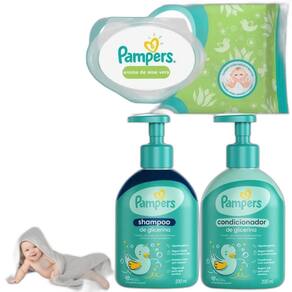 Kit Pampers Shampoo Condicionador Lenço Umedecidos Glicerina Bem vindo a a loja Flocus. É um prazer tê-lo a como nosso a cliente CONTEÚDO DO KIT: 1 Shampoo Pampers Glicerina - 200ml 1 Condicionador Pampers Glicerina - 200ml 1 pac. Lenço Umedecido Pampers Aroma de Aloe Vera 48 unidades Pampers Glicerina proporciona limpeza suave e segura do cabelo delicado de bebês e crianças. Ideal para todos os tipos de cabelo do bebê. O kit de Glicerina Pampers traz uma fórmula hipoalergênica pensada para o cuidado especial do cabelo delicado dos bebês e segura até para couro cabeludo sensível, trazendo maior suavidade e mantendo os fios macios. Além disso, proporciona uma lavagem suave e sem irritações nos olhos, evitando o desconforto das lágrimas durante o banho. Conta com pH ideal para o couro cabeludo do bebê e perfumação suave e segura para recém-nascidos. Não contém nenhum álcool etílico, fenoxietanol, parabenos e corantes. Fórmula biodegradável, vegana e livre de crueldade animal, com 97% de ingredientes naturais. Testado, aprovado e recomendado por pediatras e dermatologistas. Os Lenços Umedecidos Pampers com Cheirinho De Aloe Vera que foram criados para aquela limpeza prática do dia a dia, porque além de serem suaves e resistentes, hidratam e refrescam a pele do seu bebê sem causar irritações, e podem ser em bumbuns, mão e rosto. Seu bebê limpinho e sem pele irritada com Pampers BENEFÍCIOS: Limpeza completa da cabeça aos pés; Sem álcool, fenoxietanol, parabenos e corantes; Testado e aprovado por pediatras e dermatologistas; Seguro até para couro cabeludo sensível; Hipoalergênico e seguro desde os primeiros dias; 98% de ingredientes naturais; Fórmula vegana e livre de crueldade animal; Mais suavidade e mantém a pele do neném macia; Hipoalergênico; Sem lágrimas. MODO DE USAR: Shampoo: Coloque um pouco do shampoo em uma das mãos e espalhe pelo cabelinho molhado do bebê durante o banho. Massageie suavemente e enxágue em seguida com água. Condicionador: Coloque um pouco do condicionador ao longo dos fios e espalhe pelo cabelinho molhado do seu bebê durante o banho. Desembarace com facilidade deixando agir por alguns minutos. Enxágue bem em seguida com água. Lenço umedecido: Para abrir a embalagem, levantar a etiqueta no local indicado. Retire uma toalhinha umedecida e use nas áreas que deseja limpar. OBS: Não jogue no vaso. Jogue a toalhinha umedecida Utilizado no lixo. OBS 2:Manter a embalagem bem fechada para conservar a qualidade do produto. Orientações ao Consumidor: Agradecemos por escolher a Loja Flocus e por confiar em nós para cuidar da beleza dos seus cabelos. Em caso de dúvidas, favor enviar sua pergunta Flocus Marca: Não Informado Ean: 7735118895455