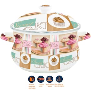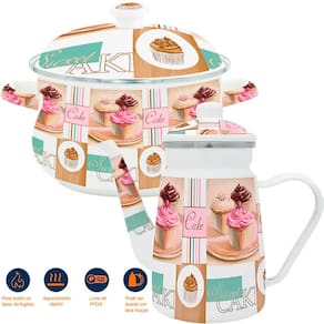 Kit Panela Caçarola Bule Cake Esmaltados Vintage Com Indução -