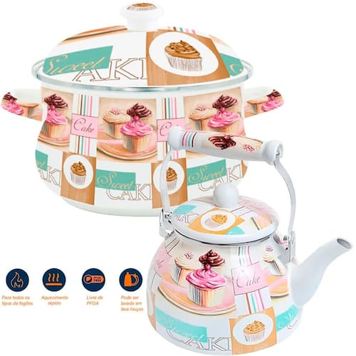 1 Chaleira Esmaltada Bico De Ganso Cake De 2,5 Litros;