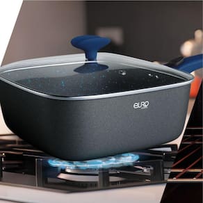 Revestimento de 5 camadas: Antiaderente Premium Livre de PFOA, Antidesgaste, Alumínio, Pintura Resistente, Base de Indução. Cabos removíveis com tecnologia Smart Click. Fácil de limpar. Saudável e seguro (livre de PFOA e metais pesados).Porta-fio