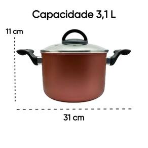 Modo Chef ativado! Para inspirar... Sua Criatividade na hora cozinhar. Sua cozinha equipada com utensílios que facilitam o dia a dia. Beleza, elegância e charme, você vai se apaixonar por esse lindo kit com design moderno, além de versátil, funcional e incrivelmente lindo! Kit acompanha 01 Panela 18 cm com Tampa de Vidro Temperado e 01 Caldeirão 18 cm de diâmetro e tampa de vidro. O diferencial desse item está em seu material, alumínio de alta qualidade com espessura de 1,1 mm, que confere ao item uma estrutura resistente garantindo a durabilidade e distribuição eficiente do calor, proporcionando o cozimento mais rápido e uniforme dos alimentos. Revestido com 5 camadas de Antiaderente TEFLON (DuPont) - PFOA Free, internamente e externamente, evitando que o alimento grude na superfície, o que possibilita o preparo dos alimentos com menos gordura, além de proporcionar praticidade no momento da limpeza. Alça reforçada ergonômica, feita em baquelite, material antitérmico que não retém calor. Especificações Técnicas: Dimensões aproximadas - cm: (Altura x Largura x Comprimento - Capacidade volume): - 1 Caldeirão 18 cm de diâmetro c/ tampa de vidro – 12,5 x 18 x 31 – 3,1 L - 1 Panela 18 cm de diâmetro c/ tampa de vidro – 8,5 x 19 x 30 – 1,9 L Revestimento Externo: Antiaderente Revestimento Interno: Antiaderente Espessura Material: 1,1 mm Alça: Baquelite Peso Caldeirão c/ tampa de vidro: 705 g Peso Panela c/ tampa de vidro: 573 g Dimensões aproximadas da embalagem (AxLxP): 20,5 x 21,5 x 37 cm Peso Embalagem - Caixa Parda: 195 g Recomendações de uso: Antes do primeiro uso é necessário realizar a limpeza e a cura do item, imprescindível para durabilidade e proteção da camada antiaderente. Lave com esponja macia e detergente neutro, seque-a com um pano limpo. Unte a parte interna com óleo ou outra gordura e leve-a ao fogo baixo por 2 minuto. Deixe-a esfriar, lave, enxugue e está pronta para utilizar. Cuidados: - Para conservação e durabilidade do seu produto lavar somente com lado macio da esponja; - Evite a imersão do produto quente em água fria. Sempre o deixe esfriar antes de lavar; - Para mexer os alimentos use somente utensílios de silicone ou nylon; - Não exponha as alças e cabos diretamente ao fogo ou fonte de calor prolongado; - Não pode ser levada ao forno e/ou microondas; - Mantenha o produto sobre a chama do fogão apenas o necessário para o cozimento, sempre em fogo baixo ou médio (nunca superior a 350°C). Detalhes: - Garantia 30 dias contra defeitos de fabricação. - Itens decorativos não acompanham o produto. Imagens meramente ilustrativas - A cor do produto pode sofrer alteração de acordo com a qualidade do monitor. - Para descarte dos produtos e embalagens siga as orientações de reciclagem vigente. Estamos à disposição para qualquer dúvida. Agradecemos a sua visita e aguardamos seu pedido! Atenciosamente Equipe Mandacaru & Varejo
