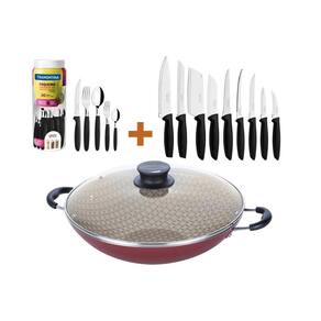 - 1 Panela WOK Alumínio 36 cm Paris Vermelho - Tramontina