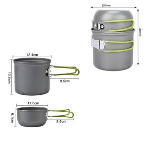 Kit Panelas Camping Aluminio Kit Cozinha Acampamento Outdoor Panela Viagem Praia Pesca Com Bolsa Sacola Kit de Panelas para Camping com 2 peças Este kit de cozinha conta com 2 panelas. As panelas são feitas em alumínio anodizado, que faz com que seja sólidas e leves, e resistentes a altas temperaturas e abrasão. O kit se torna bem compacto pois os cabos das panelas podem ser dobrados e as panelas e demais itens se encaixam uns nos outros. O kit pode ser armazenado em um saco de rede para o transporte. É próprio para Camping, Caminhadas, Acampamentos, Piqueniques e Outras Atividades Ao Ar Livre, pois é bem leve e pequeno, não ocupando muito espaço em sua mochila.